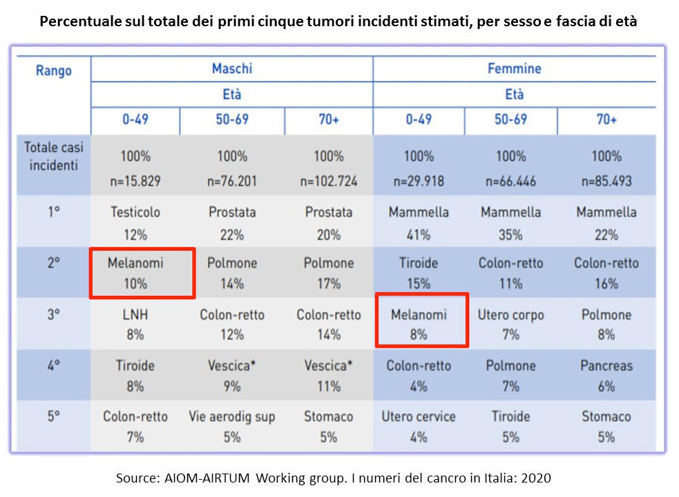 circa 14.900 d melanoma nel 2020 (8.100 uomini e 6.700 donne).